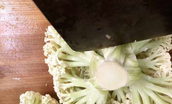 想必很多人切花菜的時候,都會出現一個問題,花菜的葉子會散碎掉,其實切花菜也是有小技巧的。把花菜切小朵的時候,不要直接對著花菜切,要反過來,切花菜的莖稈,這樣就能把花菜切菜很完整。
