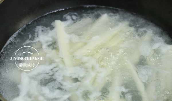 2、處理山藥前,需要燒小半鍋清水。水開後把山藥放進去,焯燙兩三分鐘左右基本就燙熟瞭。