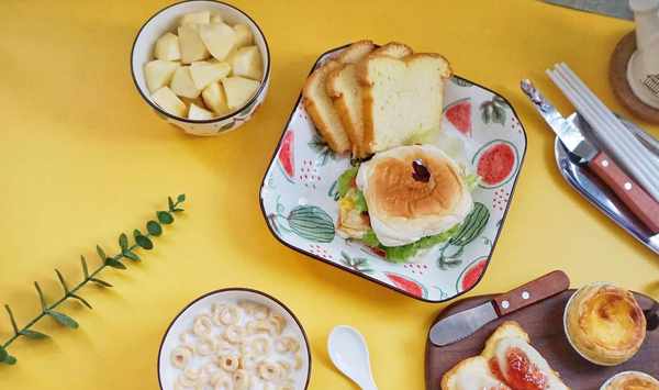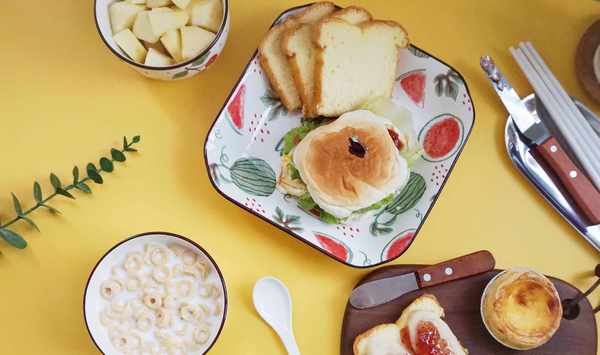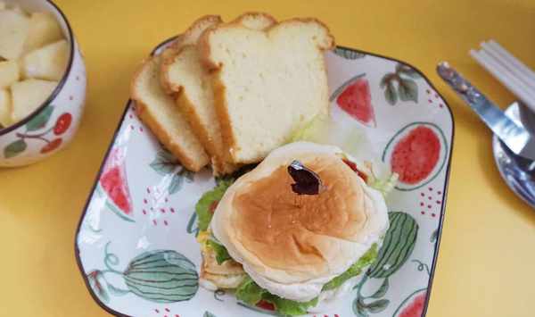 昨天傍晚時分去接學鋼琴的小朋友回家,回家路上小朋友說肚子餓,想吃點東西,於是我們就來到了一家麵包烘焙店選了一點麵包和蛋糕。麵包蛋糕吃不完,放到第二天我有妙招快速解决吃剩的麵包糕點。把麵包做成火腿蛋漢堡,把蛋糕做成香蕉果醬三明治。