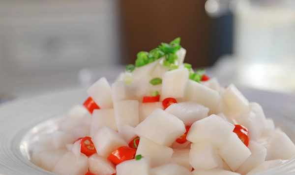 第五步:再加入小米辣攪勻蓋上蓋子浸泡一夜,第二天取出泡好的蘿卜擺盤就可以開吃瞭。