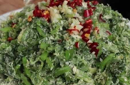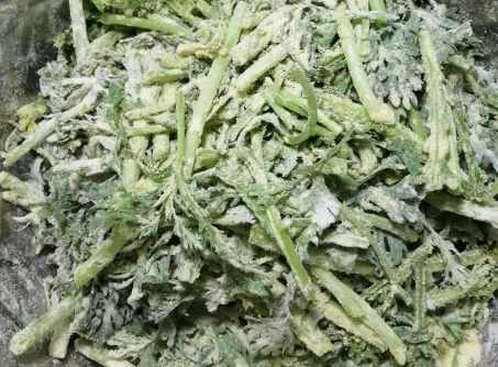 這道清香營養的粉蒸茼蒿就做好了,包你吃得歡,我家隔三差五就吃。