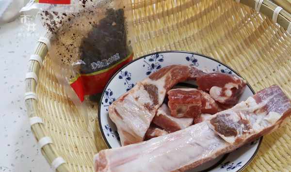 第一步:排骨砍成4釐米左右的段,放在盆中沖洗2分鐘,洗乾淨血水。