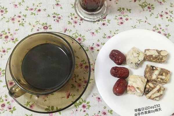 【Day1】零食作早餐,咖啡來配,煮一壺開水用來沖咖啡,幾塊雪花酥+紅棗,花5分鐘零食代餐,高熱量零食,一定放在早上吃。