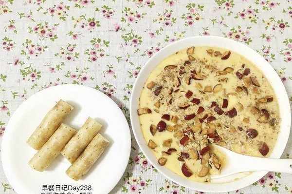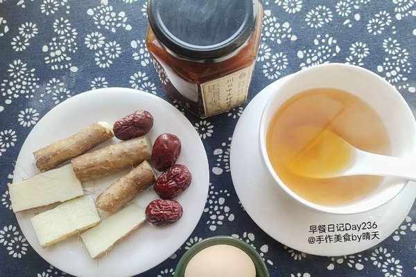 燉蛋羹,用2顆黑糖,4顆核桃4顆紅棗燉蛋羹,蒸瞭山藥就是早餐,晨跑後的早餐。