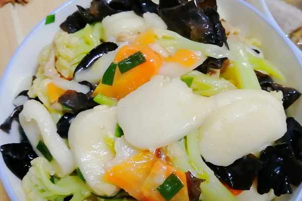 白果是用大米做的主食,切成片,加入花菜、或者適量的海鮮一起炒是最美味的,尤其是搭配上魚露一起炒,當主食是大家都喜歡吃的。