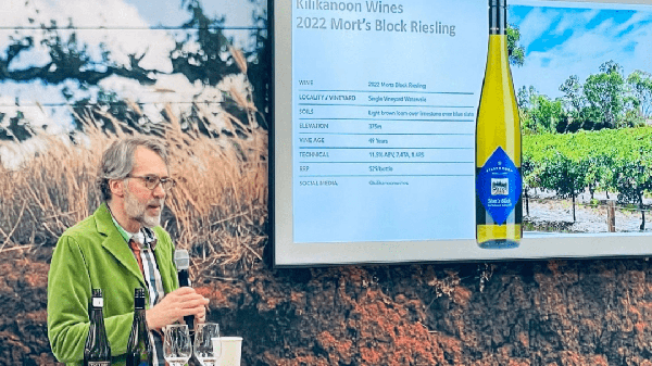 張裕旗下澳大利亞克萊爾谷歌濃酒莊展臺,德國葡萄酒評論傢Stuart Pigott正在向現場嘉賓介紹歌濃酒莊雷司令產品
