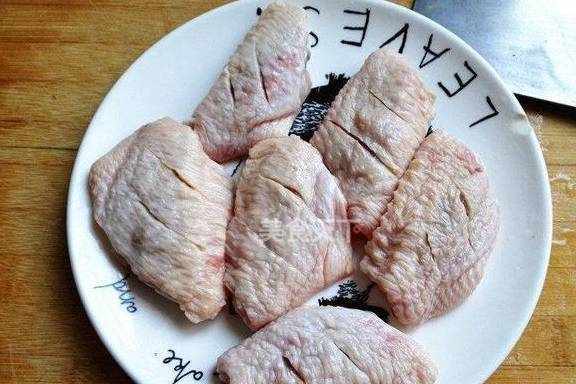 1.雞翅清洗幹凈,正面斜著切兩刀。