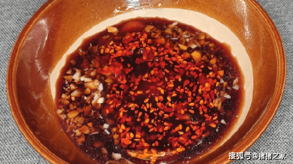 6.準備一個料汁,碗中加入一勺蒜末、半勺生抽、半勺醋、少許鹽、白糖、一點香油,喜歡吃辣的可以加一點油辣子,然後攪拌均勻。