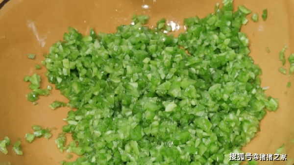 1.苦瓜先切去頭和尾,再從中間切開一分為二,再用小勺子把苦瓜的瓜馕去掉,再把苦瓜先切成片,再切成小碎丁,然後放入碗中,加入一小勺鹽,攪拌均勻醃制10分鐘。