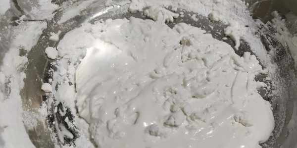5:糯米粉加適量溫水,攪拌均勻揉成光滑的面團