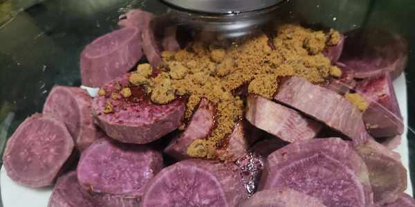 2:紫薯裡倒入適量的紅糖,放入蒸鍋大火燒開蒸二十分鐘