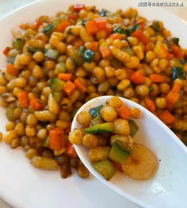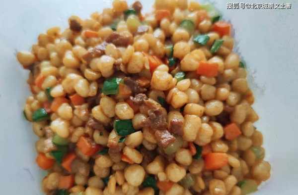 這口感,比手工做的還要勁道一些,一盤兒小小的炒疙瘩,這裡面的門道和講究,遠比我們想象中的要多,看著簡單,但做起來就不是那麼回事兒瞭,蔬菜丁兒,蝦仁兒,肉丁兒,一樣都不能少,疙瘩您要想吃著勁道有嚼勁兒,不但要浸泡,過水,還要反復過油,這是經驗,也是傳統。