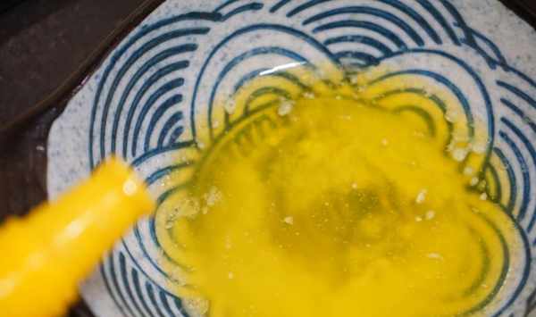 3.我使用的是無鹽動物發酵黃油,我更喜歡它濃鬱的味道。將黃油放入小蝶中,微波爐高火加熱1分鐘到融化,然後我們加入蜂蜜拌勻。