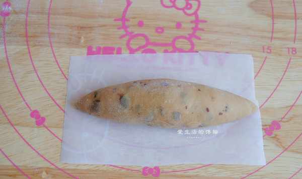 7,再對折捏合,搓成橄欖狀,收口捏緊放在油紙上,全部做好。