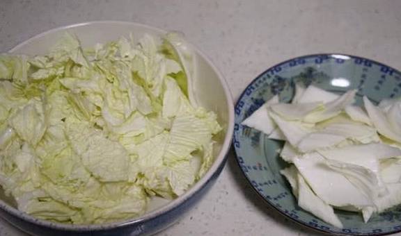 1、白菜葉洗凈,切的時候菜葉和菜幫分開,因為需要不同時間下鍋。