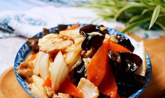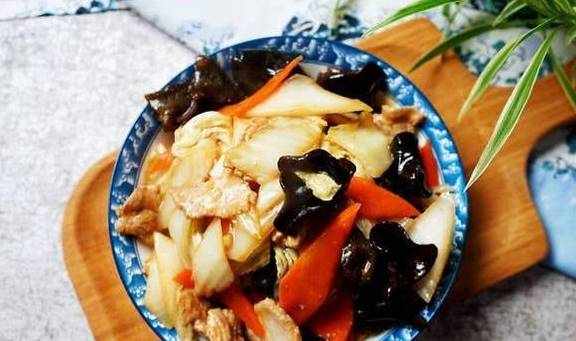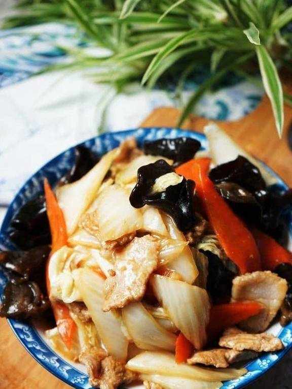 這道和朋友們分享的白菜溜肉片,相信很多北方傢庭,冬季裡少不瞭做它,除瞭以白菜、胡蘿卜為食材,一般還會加入泡發的木耳,同樣都是口感清脆,有著排毒去火降血脂的功效,這樣一道菜,卻可以起到敗火潤肺、降血脂、排除毒素的作用,的確是道做法簡單但養生功效不一般的傢常菜呢。