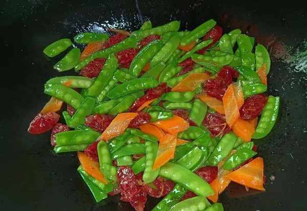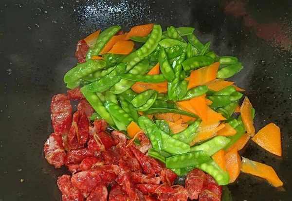 臘腸,荷蘭豆,胡蘿卜,食鹽,蠔油,食用油