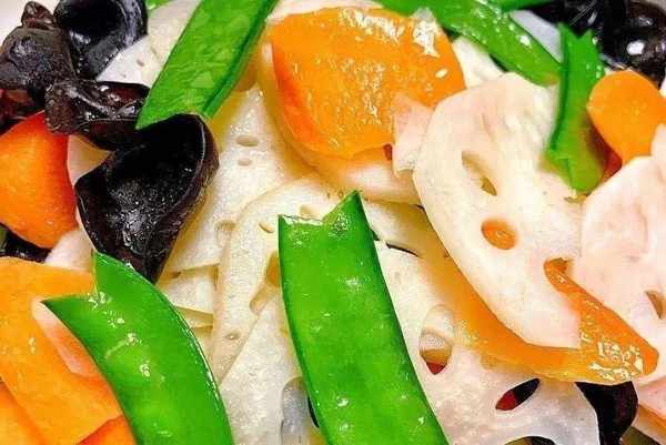 蓮藕,胡蘿卜,荷蘭豆,木耳,食鹽,蠔油,食用油