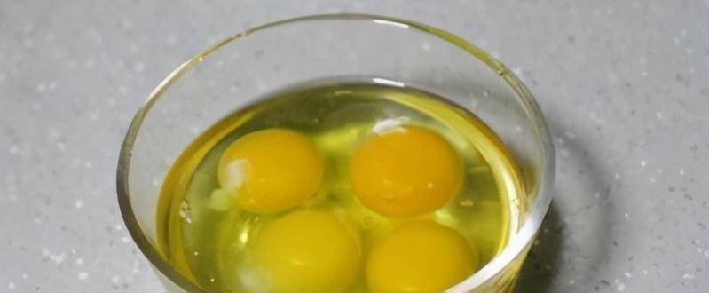 2、將4個雞蛋打入碗中,將蛋黃放入另一個碗中,分別用筷子攪散備用。