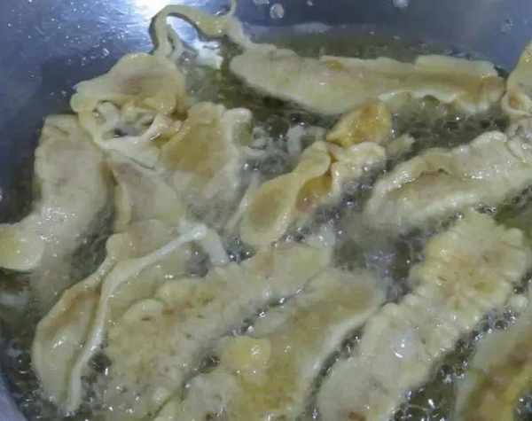 5. 將脆皮肉煎至淡黃色出鍋。 10分鐘後,放入油鍋,炸至酥脆呈金黃色,即可上桌。 最後蘸上國外辣醬就可以吃瞭。 再炸這一步,是做脆