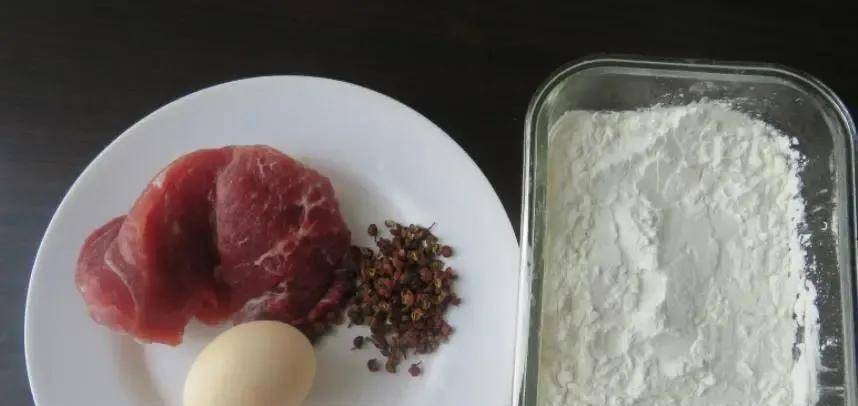 【提前準備食物】:生豬肉、笨蛋、麻椒、食用鹽、醬油、食用油、玉米粉、糯米粉