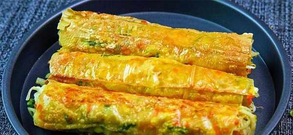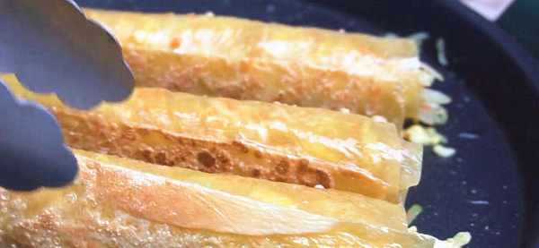 10.卷好之後放入鍋中,加點油煎幾下,把表面煎到兩面顏色金黃,有點焦酥的程度就可以出鍋瞭。