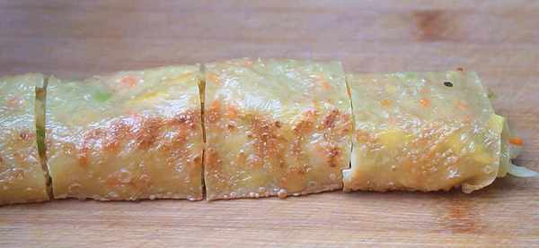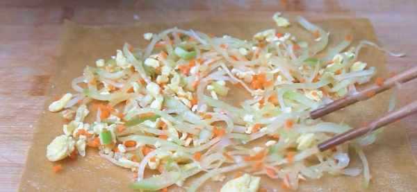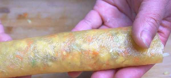 9.接口處刷一點雞蛋液方便粘合,然後把它卷起來即可。調料不要太厚,不然卷不起來,邊緣要預留。全部按照這個步驟卷好。