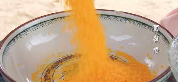 6、 取兩個雞蛋打勻制成蛋液,並備好面包糠