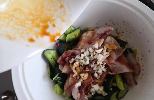 這盤涼菜一定要現拌現吃,不然拌早瞭黃瓜容易出水,影響賣相也會影響氣質。