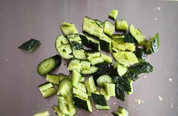 4. 再斜著切成塊,這樣黃瓜更容易入味,