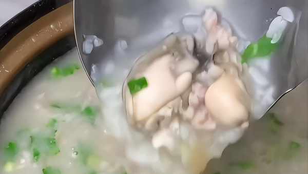放入瘦肉,香菇和生蠔再煮熟。