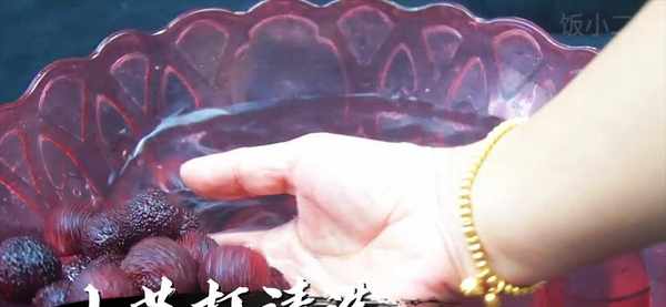 揉洗之後再靜置浸泡十分鐘。小蘇打清潔力非常地強,它的堿性能將那些附在楊梅果肉裡的小蟲子小蟲卵刺激出來,而食鹽具有很好的殺菌效果,它們能幫助我們把楊梅洗得更幹凈。十分鐘後我們可以看到浸泡過楊梅的水已經變成紅色,而水面上還漂浮著清洗出來的雜質。