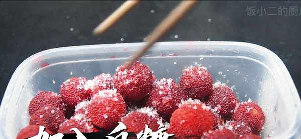 十分鐘之後,我們就可以將砂鍋裡的楊梅撈出來,裝入一個有蓋的保鮮盒裡,再往楊梅上撒上你喜歡的白砂糖,用筷子將白糖和楊梅攪拌均勻,放涼以後再放入冰箱冷凍,這樣冰凍過的楊梅酸酸甜甜非常好吃。