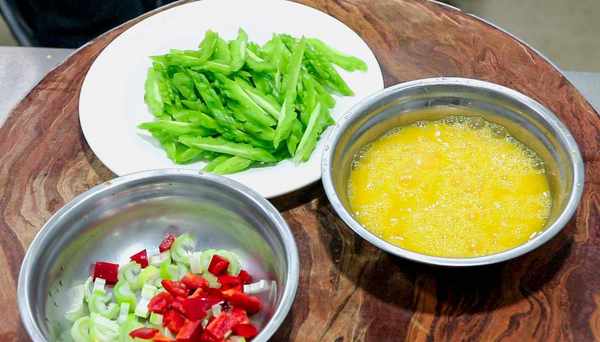 4.另起鍋加適量食用油,油熱後將雞蛋液下鍋,翻炒幾下等雞蛋定型,撈出控油。