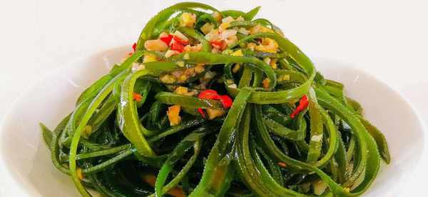 海帶買來後清洗幹凈多餘的鹽分和雜質,然後切成細絲,水開下鍋燙一分鐘撈出來,用水沖涼後控幹水分放在碗中,