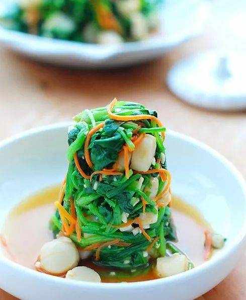 菠菜、熟花生米、花椒少許、幹辣椒適量、鹽2克左右、糖3克左右、醋2茶匙、宴友香油少許