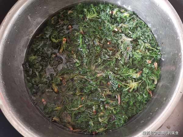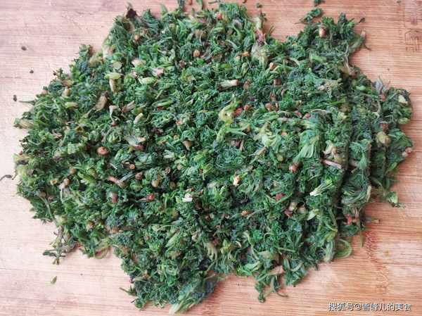 第一步:上圖中就是白蒿,把白蒿洗凈汆燙備用。白蒿比較好的清熱利濕,涼血止血作用,而且能夠有效地促進人體膽汁流量增加,降低人體的膽固醇含量。同時,能夠有效地促進人體整體的膽汁分泌和排泄,達到比較好的效果,同時還能夠有效降低人體的血清膽固醇,保護幹細胞再生,達到比較好的解毒效果,促進我們身體的解熱鎮痛和抗炎作用。所以,在遇到白蒿的時候盡量采挖一些,回傢做給傢人吃。
