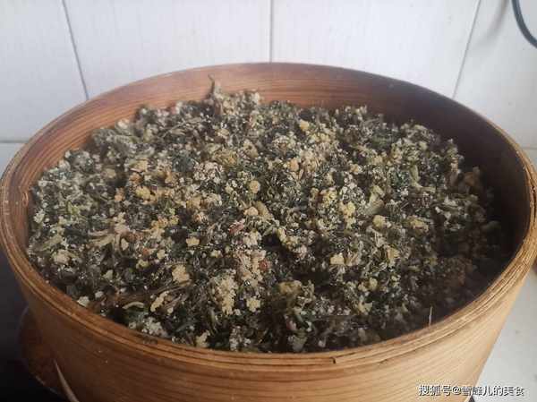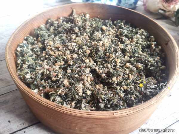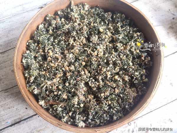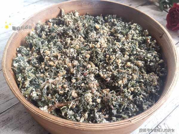 第八步:這樣蒸一籠屜,既可當菜又可當飯,是白蒿的吃法之一,也是我們老傢最常做的傢常美食。