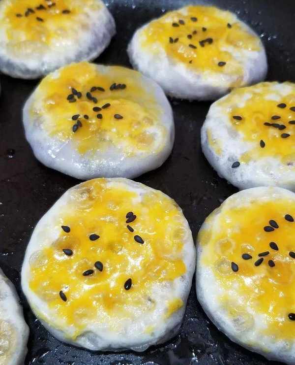 紫薯酥餅 材料:紫薯、手抓餅、雞蛋、牛奶、時尚、黑芝麻。