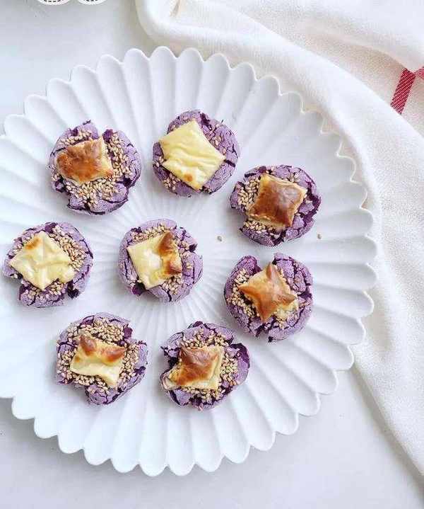一款不用揉面就能做的餅, 一款香哭隔壁小孩的餅, 一款酥到掉渣渣的餅, 就是這款甜香軟糯的, 【紫薯酥餅】 好吃易做, 老少咸宜~