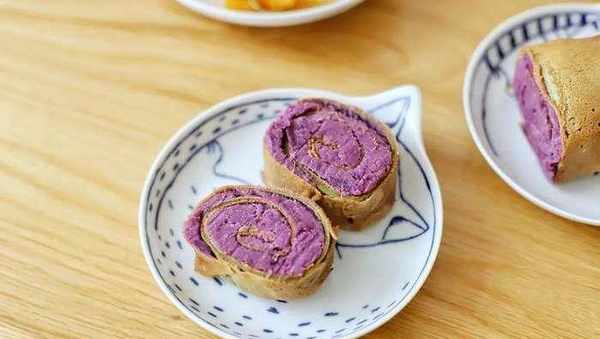 紫薯面包卷 材料:紫薯、吐司片、牛奶、雞蛋。 制作: