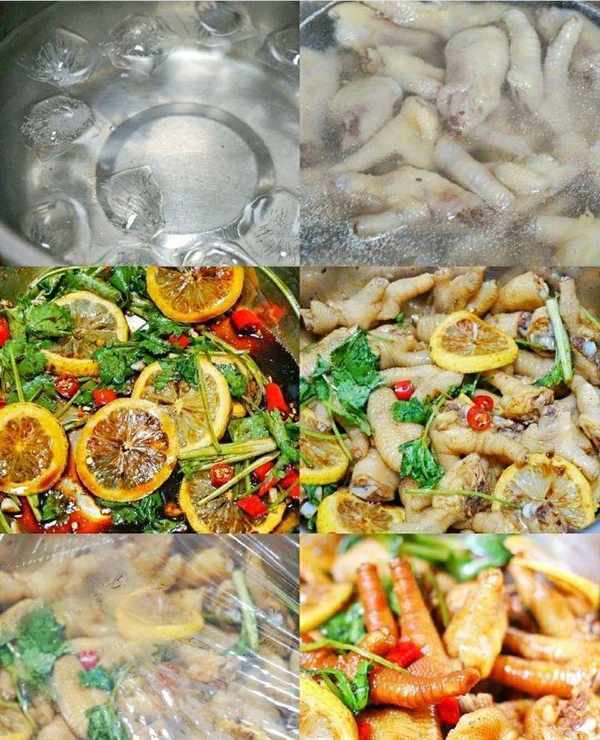 檸檬,雞爪,小米椒,香菜,蒜,薑,蔥,料酒,生抽,老抽,醋,糖,鹽,麻油,香葉