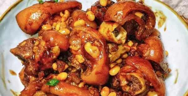主要食材:豬蹄600g,黃豆,蔥,薑蒜,五香粉,生抽,老抽,蠔油,料酒,鹽