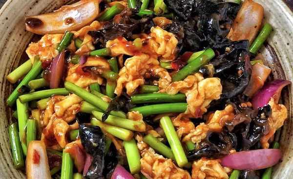 主要食材:雞蛋,蒜苔,泡發黑木耳,洋蔥