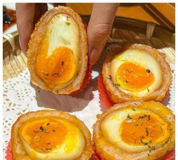 糖心蛋蝦球是上海的特色本幫菜,由蝦肉和雞蛋制作而成,外表是油炸的蝦肉,裡面糖心蛋,流心會有爆漿的感覺,金黃的顏色,看著很不錯,外表口感酥脆,帶著甜甜的味道,上海本地人都很喜歡這道菜,怎麼吃也不會膩,對於四川,重慶等地喜歡吃辣椒的人來說,這道菜確實吃不下。