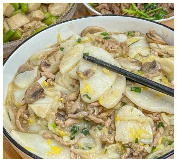 年糕對於大多數人來說並不陌生,很多人都見過,也吃過,上海的炒年糕是甜味的,對於喜歡吃甜味食物的上海人來說,炒年糕是一道美味佳品,但是重口味的外地人吃不慣這個味道,咸中有甜,我本就吃不慣年糕,還是甜味的,確實吃不下,還是喜歡吃紅油的水煮肉片,夠麻夠辣。