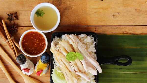 用雞湯蒸出來的米飯,氣質鮮美。Rice steamed with chicken and soup