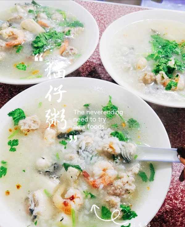 關於貓仔粥的叫法在當地有多種不同版本,不過最靠譜的應該是各種不同的料拌在粥裡,和給小貓的吃食很像,因為在當地貓仔粥還有另外一個名字叫魚仔粥。