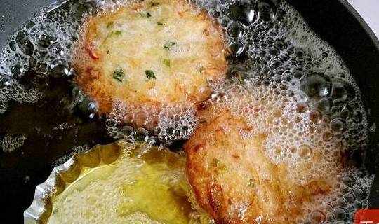16.炸制表面微黃,基本定型後,從模具中倒出,如果不會自己脫落,可以用竹簽挑一下就出來瞭。