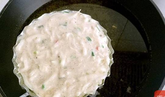 14.加熱後的模具取出,模具裡面留一點底油,把面糊放入。